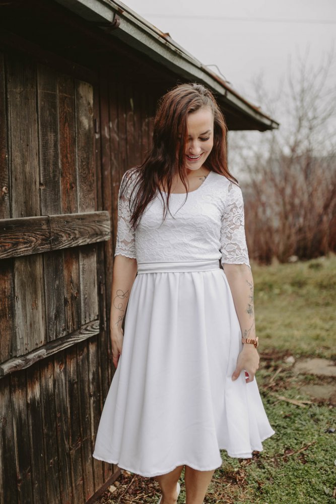 And finally, we, of course, couldn't miss Wedding Dresses for Nursing in our collection. We crafted these in MIDI length to showcase different options for our dresses. This nursing opening can be applied to all our wedding dresses. If you're getting married and already have a little one who requires regular feeding, these dresses will surely make your day easier and more enjoyable, as as you won't have to undress all the time.